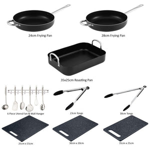 Effortless and comfortable to use: The SOLARIS PRO series impresses in the kitchen with its ProcalonPlus non-stick coating and heat-resistant black exterior finish. These pans, made from reinforced aluminium alloy, feature heat-resistant stainless steel handles and are all dishwasher safe. Thanks to the loop in the handle, these pans are perfect for kitchens with limited storage space and can be easily hung on the wall or under a shelf. The pans are suitable for all common stove types (induction, electric, glass-ceramic, and gas).