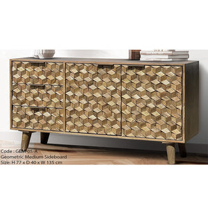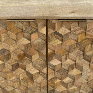The Geometric Collection is a designer led range which features a 3D cube pattern. Each piece is hand carved to produce an intricate finish - making each item unique. This collection is produced from solid mango, which is sourced from responsibly managed forests.