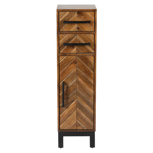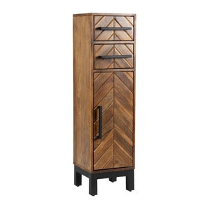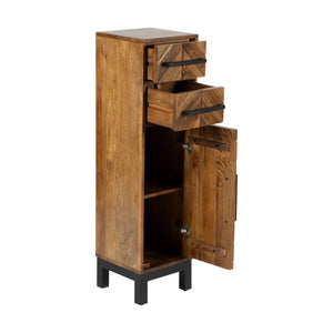 This one door, two drawer slim cabinet offers a stylish way to store household items. It can be used as a statement piece within a room or pairs wonderfully with other pieces in the collection.