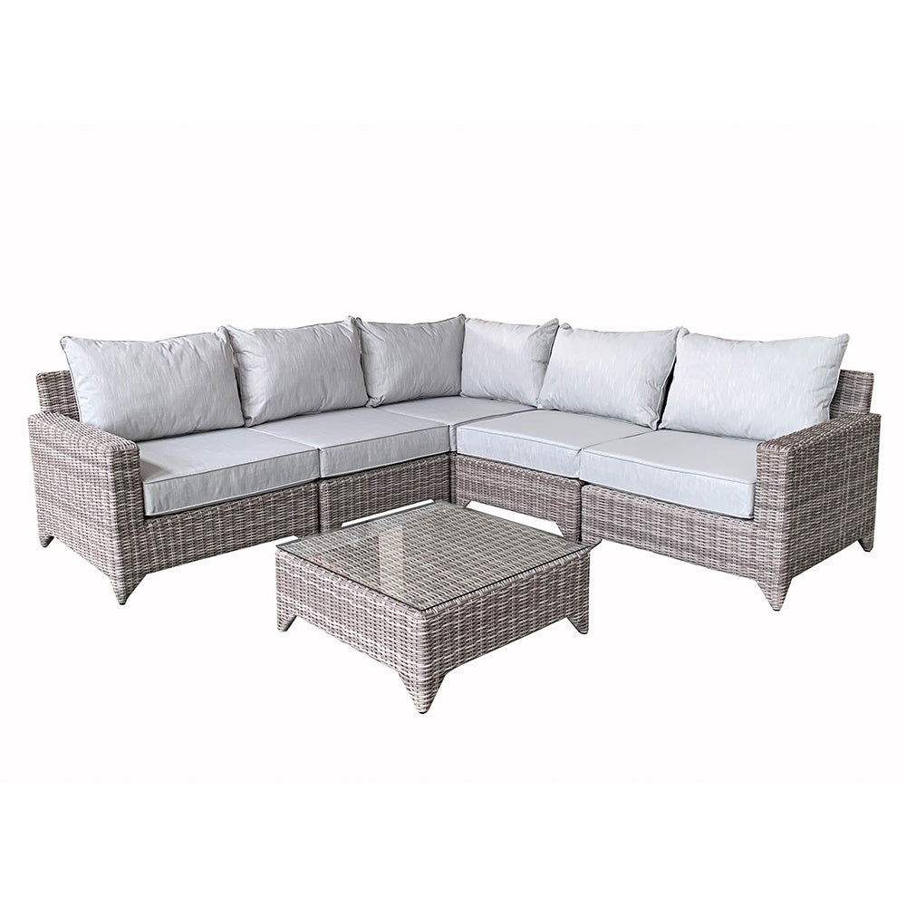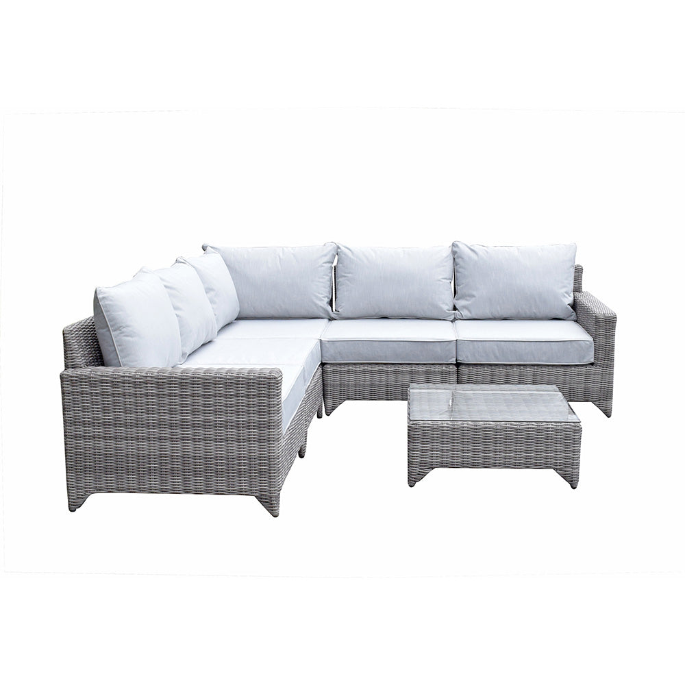 Perfect for those warm summer evenings or relaxing days in the garden, the high strength powder-coated aluminium frame will ensure this set will last for years to come. The UV treated wicker also protects against the suns rays and prolongs the life of your purchase. The 5-section sofa can be configured in a number of ways, changing for any occasion.
