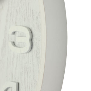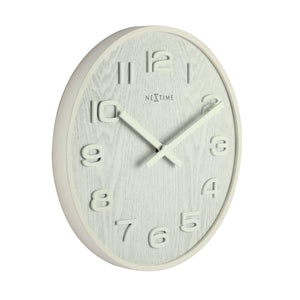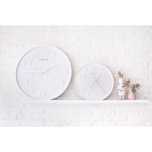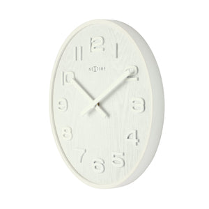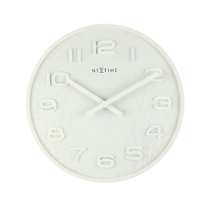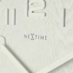The NeXtime "Wood Wood Medium" is a white wall clock made of sustainably-harvested wood with a three dimensional hour indication. The entire design, including the hands, is made of wood and each clock face is unique reflecting the grain of the wood it was made from. Nobody will have the exact same clock as you in their interior. It runs on 1 AA battery (not included).